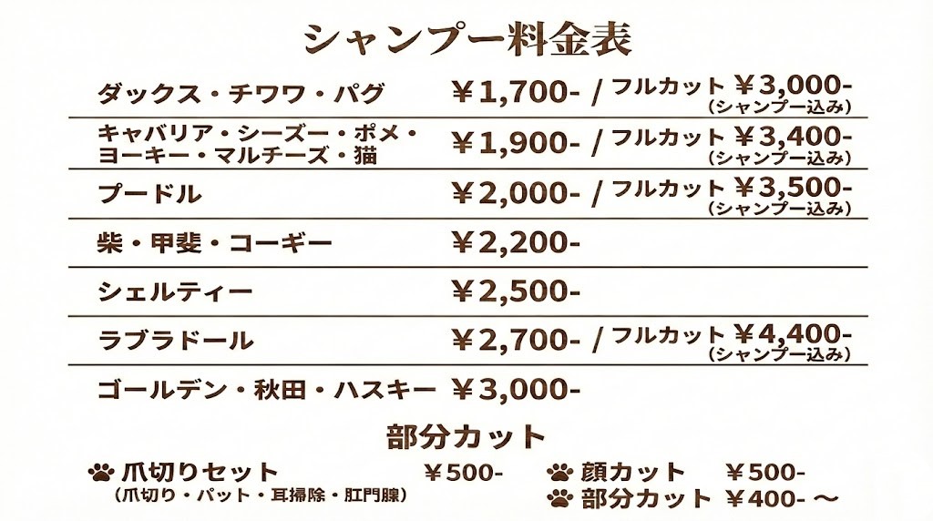 top 2025.02.202026.01.30 飼い主さんとスタッフで協力してペットをシャンプー♪ わんちゃんにとっても飼い主さんが洗ってくれることは大きな安心材料です。子犬のころから一緒にシャンプーしてあげて、ペットの健康を一緒に見守っていきましょう! ペット同伴可のカフェを併設 2026年3月頃、甲府市朝気に移転リニューアルオープンいたします。新しい店舗では、ペット同伴可のカフェを併設。シャンプーのあとにゆっくり休んで帰れます。